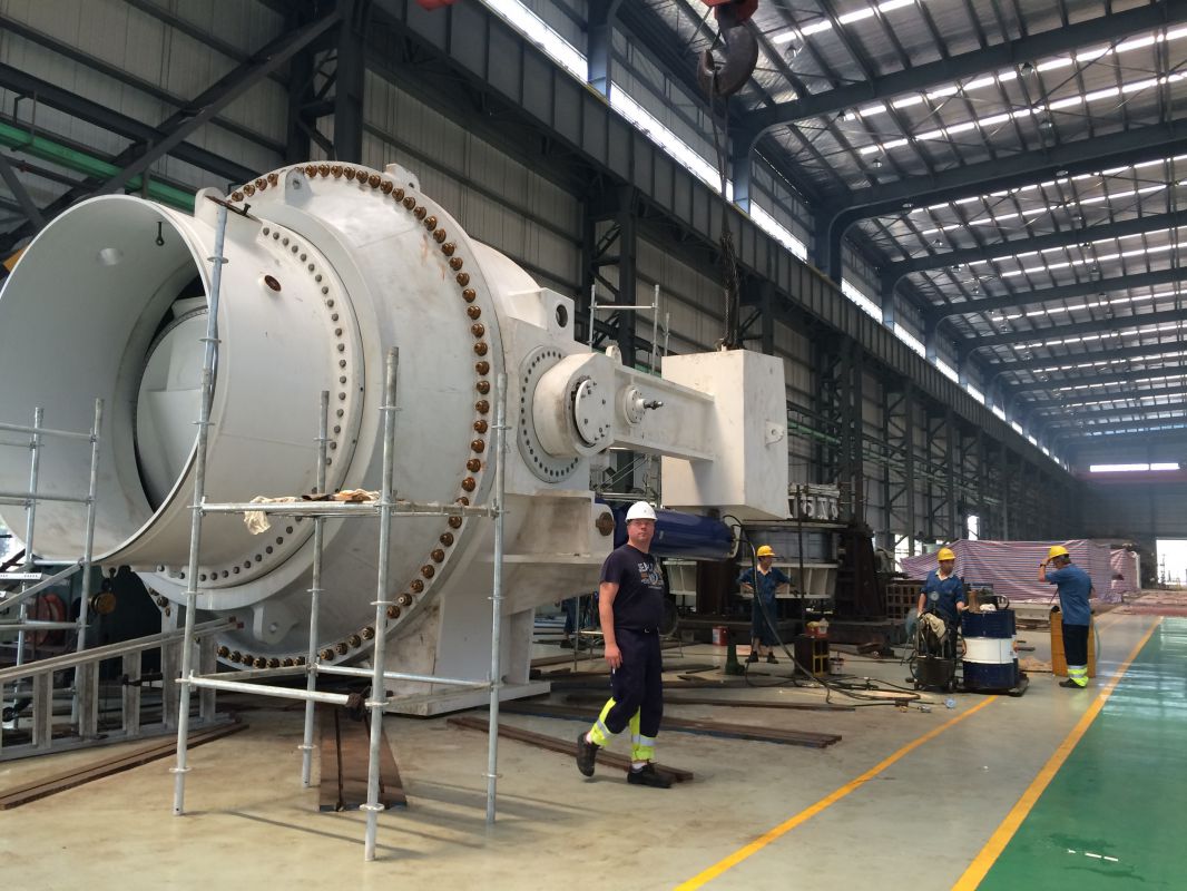 該球閥進(jìn)口直徑大,結(jié)構(gòu)復(fù)雜,需要控制焊接變形,施焊順序較為復(fù)雜,體積龐大且較重,不易翻轉(zhuǎn),焊接施工需高空作業(yè),焊接難度高,產(chǎn)品焊接制作工藝技術(shù)復(fù)雜但較成熟,在業(yè)內(nèi)焊接球閥產(chǎn)品制作工藝技術(shù)領(lǐng)先,該技術(shù)是公司目前產(chǎn)品制作最有競爭力技術(shù)。該球閥是亞洲目前最大的焊接球閥,是亞洲“焊接球閥之王”。該球閥按期焊接完工,F(xiàn)AT一次合格,得到客戶滿意和高度評(píng)價(jià)。