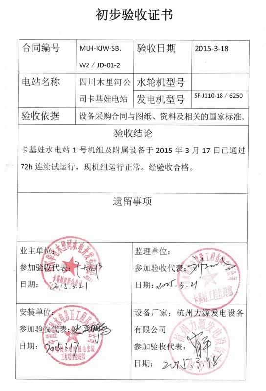 2015年12月10日下午14點(diǎn),從四川卡基娃水電站工地傳來佳訊,電站4#機(jī)組進(jìn)入72小時(shí)試運(yùn)行考核。至此,加至先前1~3#機(jī)的順利進(jìn)入商業(yè)運(yùn)行,卡基娃4臺(tái)發(fā)電機(jī)組已全部安裝完畢。