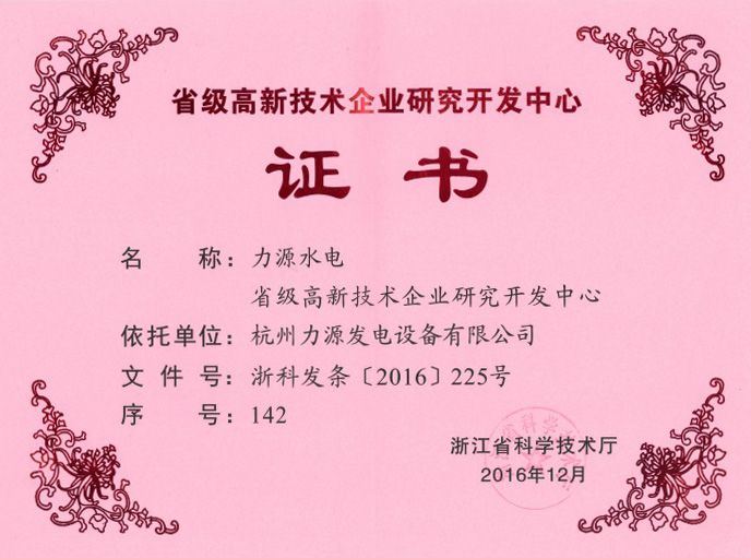 省級高新技術(shù)企業(yè)研究開發(fā)中心證書